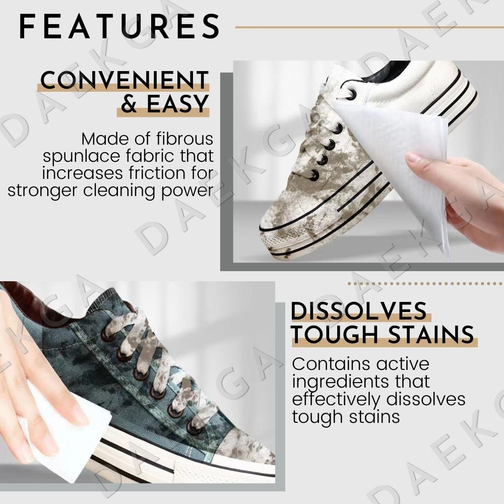 Suitable Occasion:any Suggested Look:any Styling:for wiping leather (or similar material) shoes Wanted to buy wipes for my adidas & puma shoes. Found this online and bought at least 3 packets. Packaging is convenient, just like wet tissues. You have the cover/lid for extra protection to keep the tissue moist. Just need to peel the inner seal off and take one wipe at a time. Havent tried yet on my shoe but i have high expectations. Opted for Next Day Delivery but parcel arrived in 3 days