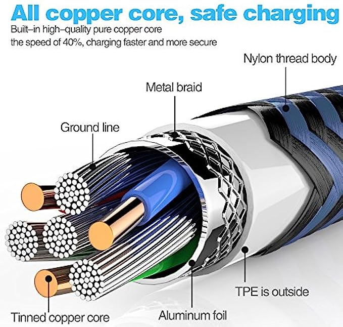 Super fast charging time, conforming to the USB-C to USB-A Specification version 1.1, 56kilohm, which ensures a safe charging at 3A Maximum. Perfect long enough cords, enjoying the data sync & charge anywhere and anytime and do not need to worry about bringing your cables anywhere.