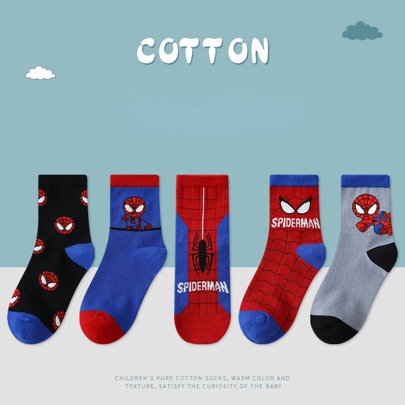 Material:Cotton Nice stockings. The Spiderman design is awesome and lovely for kids. Suits to my kid's size. Lovely colours and my kid loves it much!!!