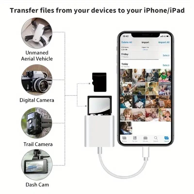 fast delivery, easy to use just connect to your iphone and your sd card and the photos can b imported ?? value for money