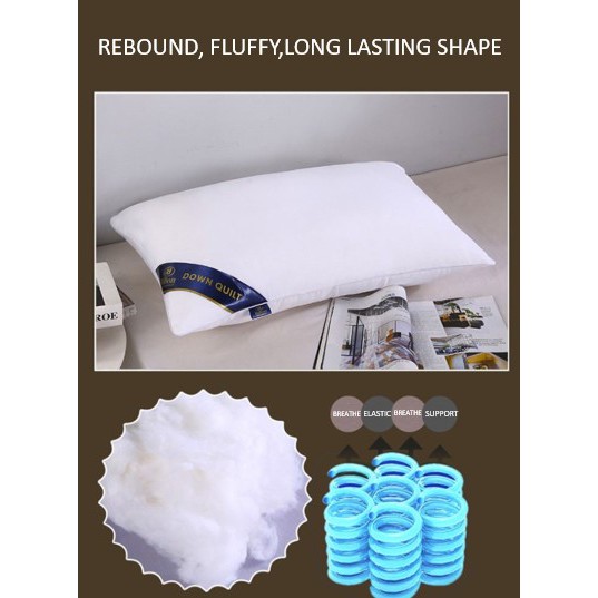 Quality:good Performance:good Appearance:good Pillow is very fluffy, soft and comfortable. Will fluff up quickly after being depressed. Product arrived on time and is well packaged. Will definitely purchase again.