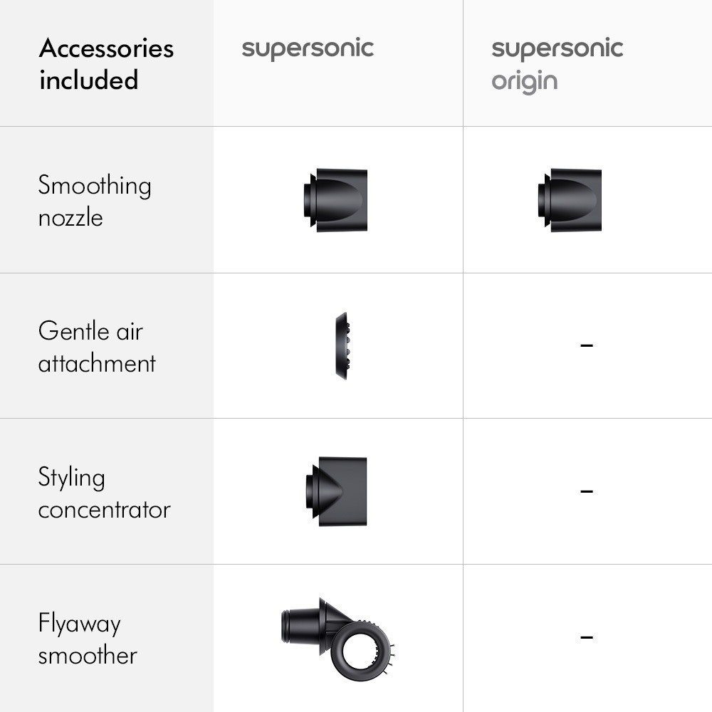 Performance:good Suitability:good Got this origin set as I did not want the extra extensions. The weight is not too heavy and there are various speeds and heat to choose from. Also a press of a button for pure cool air instead of heat. I feel this is better for my hair compared to a normal hair dryer.