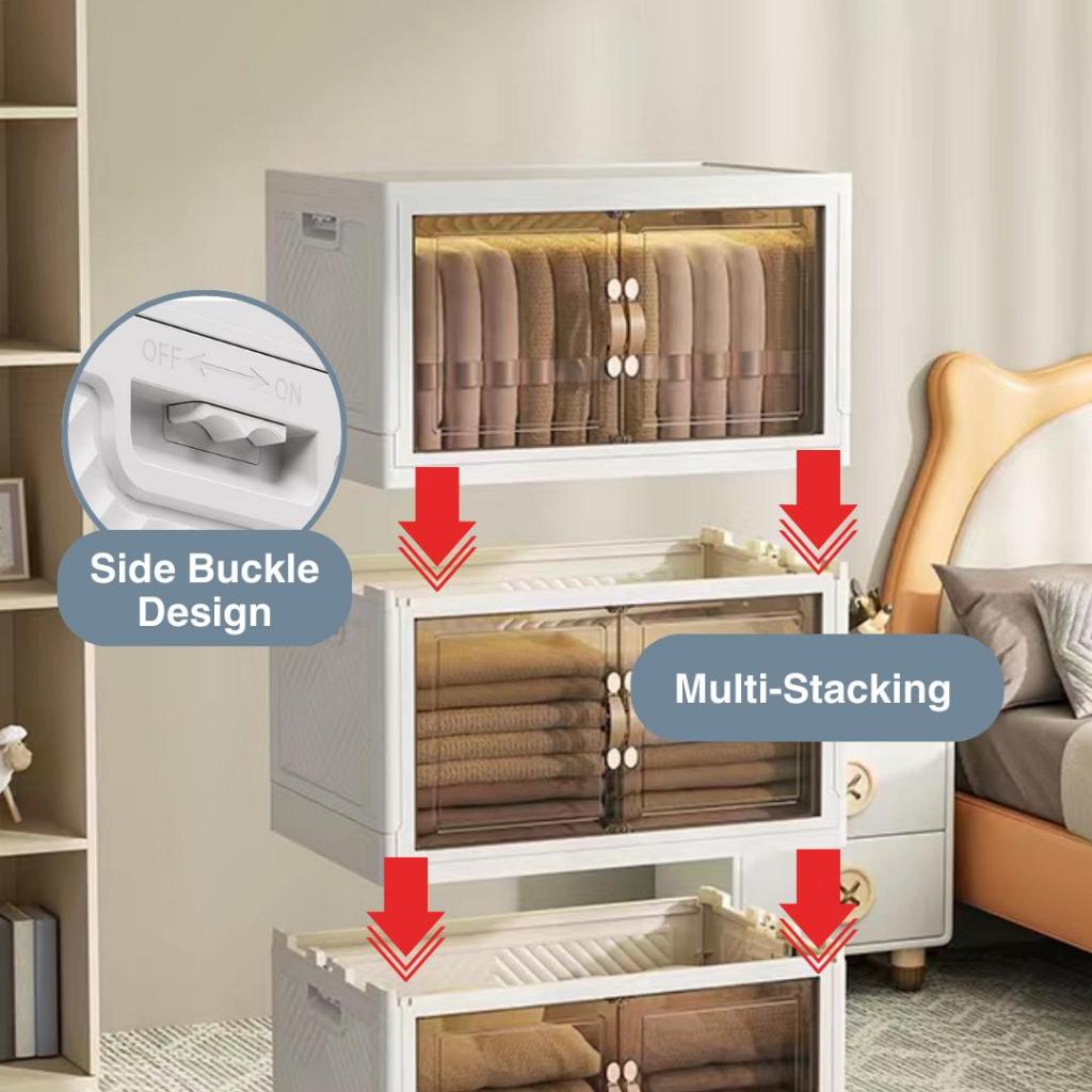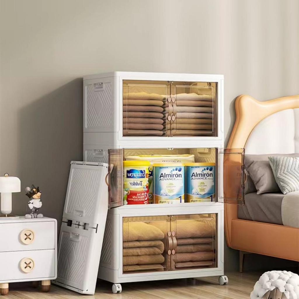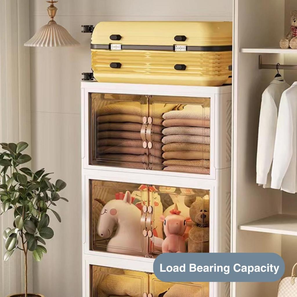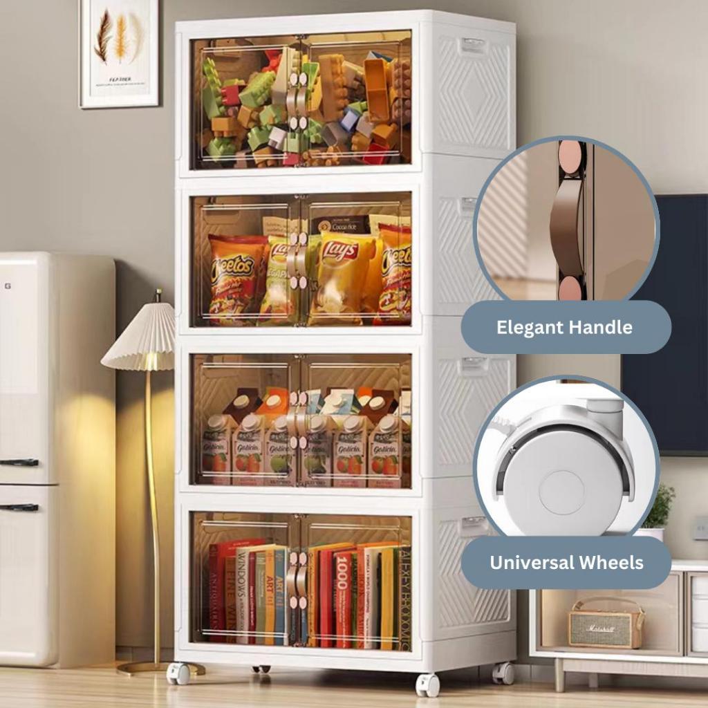 Appearance:pretty! And well built Performance:looks good so far to handle typical storage Quality:sturdy thick plastic Very well made product! Easy to fix up and everything came together nicely. Really like how it can be folded and stow away if not required. Having wheels with lock is also a plus point!