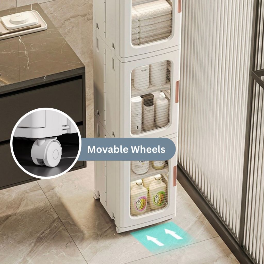 This cabinet size fit perfectly beside my washer and dryer. Very easy to install. Has wheels for easy move. Wheels can be locked. Very spaces and sturdy. Centre tray can be remove for large item. Delivery was fast. Very satisfied with the product.