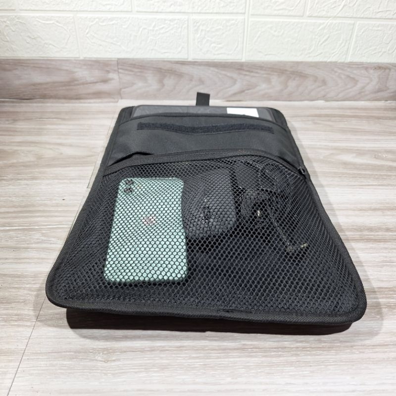 Material Quality:? Colour:navy This laptop bag arrived with no defects at my doorstep. I would prefer to pick it up at a collection point or locker to save on delivery cost. It cannot fit my home laptop but my work laptop should be able to fit. The front mesh zipper compartment allows for quick view and retrieval of cable, etc. Thank you, seller for this good deal and I think I can also use it for my tablet.