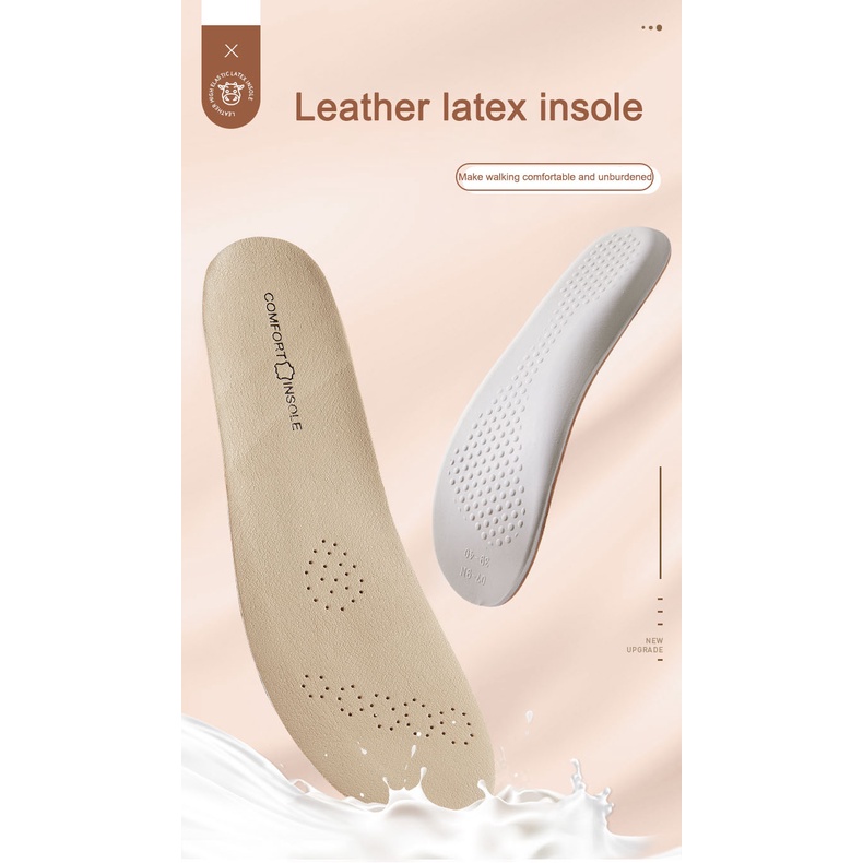 Colour:Beige Material Quality:leather latex Well received. Bought it to replace memory foam padding for my jelly shoe. This is even better. Thick material. Comfortable when walking. Good buy. Also suitable for loose shoes.?