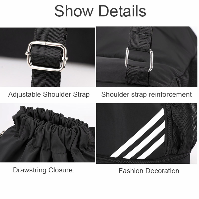 Good quality & water resistant material. As per photo illustration about the specification and description. Suitable for students putting PE or CCA attire too. Value for money!