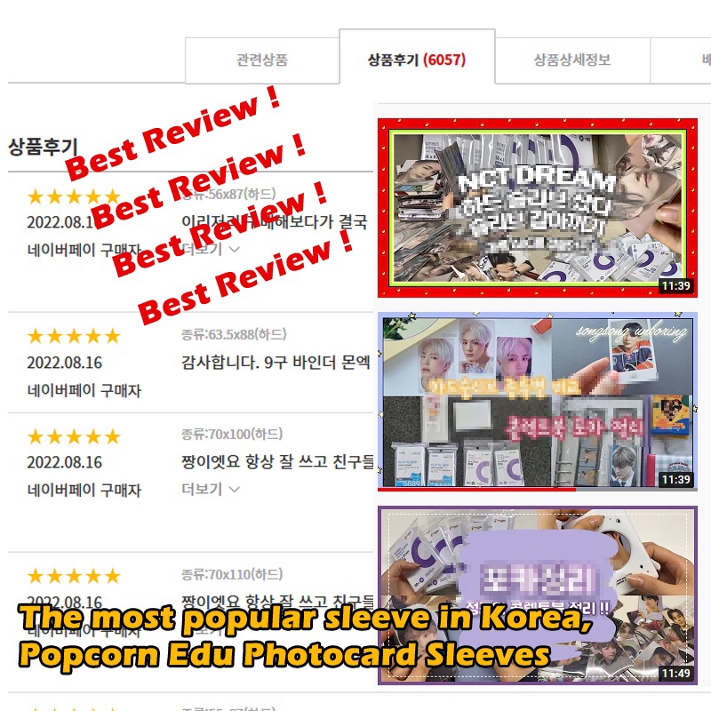 Quality:Good quality, can protect photocards well Appearance:Same as picture The best size to fit a standard photocard will be 57.5 × 89 mm. Good quality and does not get scratched easily. Recommend ? Fast shipping ??
