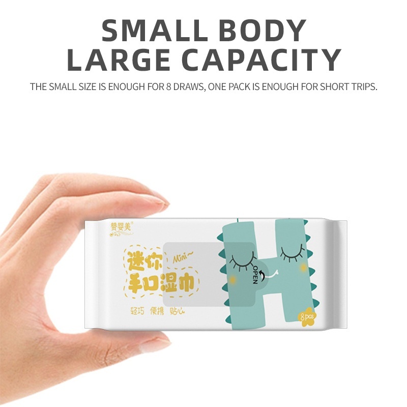 Quality:Good Performance:Good Value For Money:Cheap Small pocket sized wet tissue which is very handy to put in small bag or pocket. The size of the tissue is big enough to wipe the mouth. Comes in colourful design packaging.