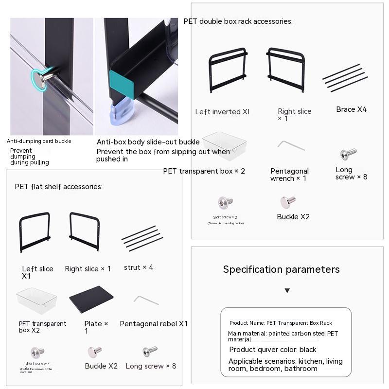 Quality:Excellent Appearance:As pictured Performance:Holds well Arrived quickly and relatively easy to set up with instructions. Fits well to under-sink storage to put cleaning supplies and soap needs. Would recommended to others!