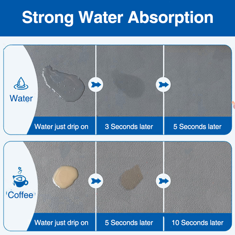 Quality:good absorbent Performance:great Appearance:black Good absorbent mat, been using it for a few days. So far so good. Not sure if it’s required to wash after multiple uses or too much splashes of water. But I would say it’s a good buy. Fast delivery local delivery too.