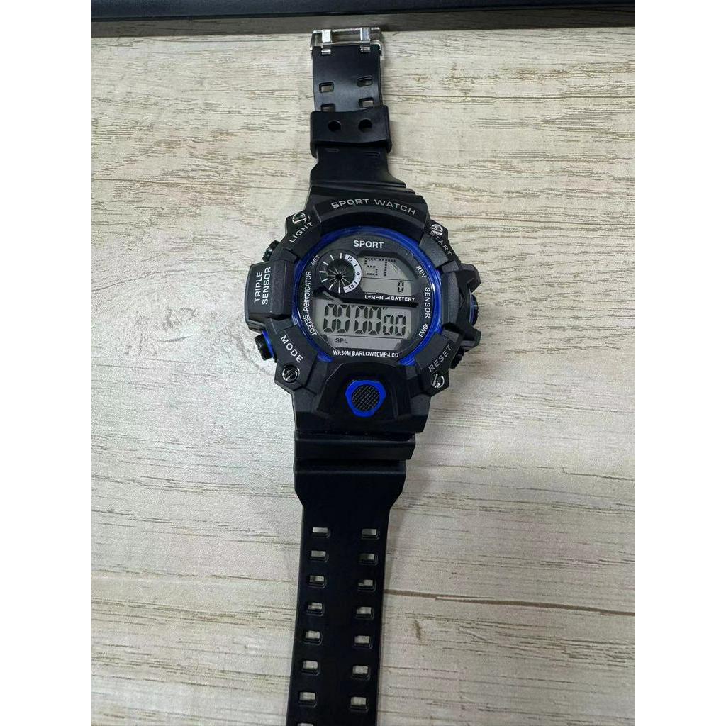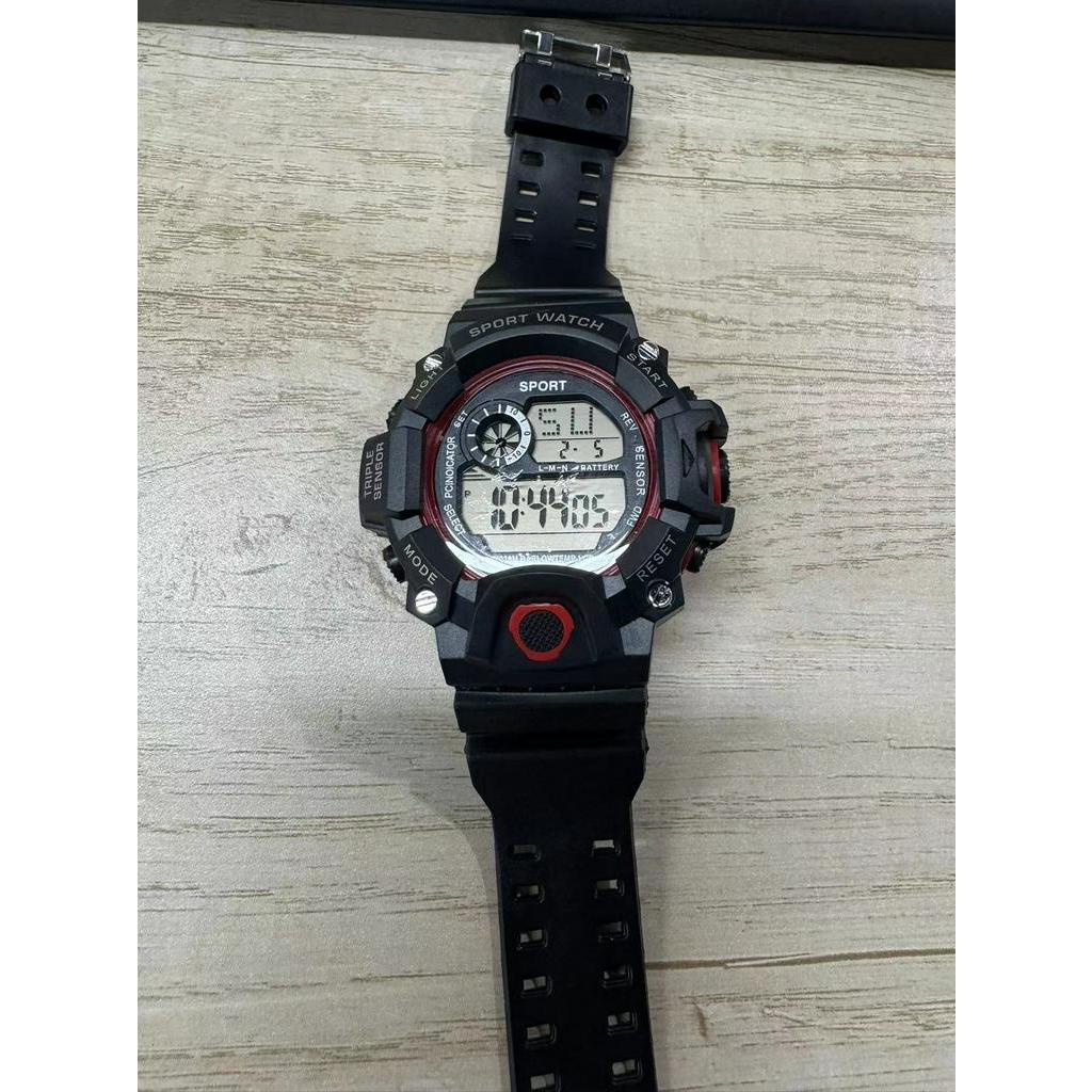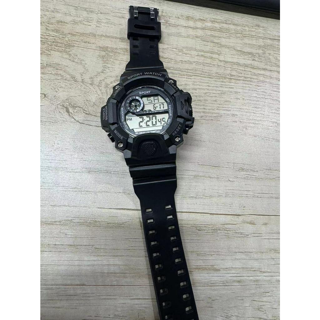 True to description:yes Material: plastic and metal and metal Color: black and black The watch is the same as the picture shown. Good quality goods. Very nice watch running on time. The product has a waterproof function.