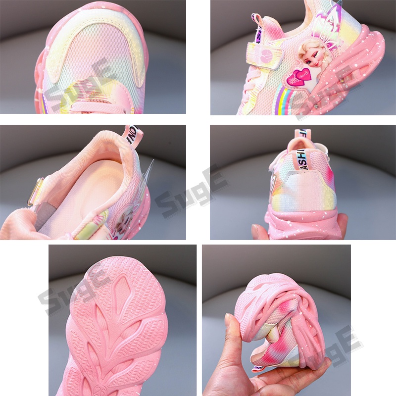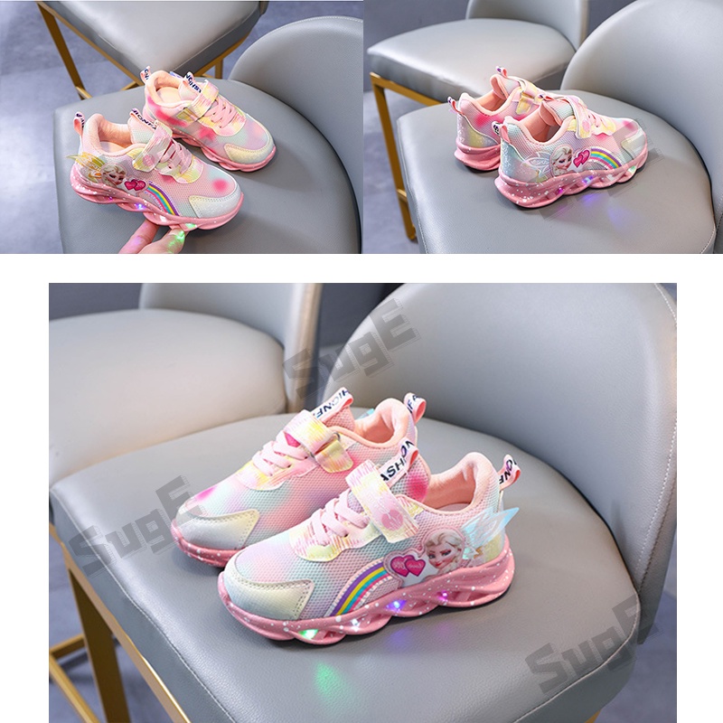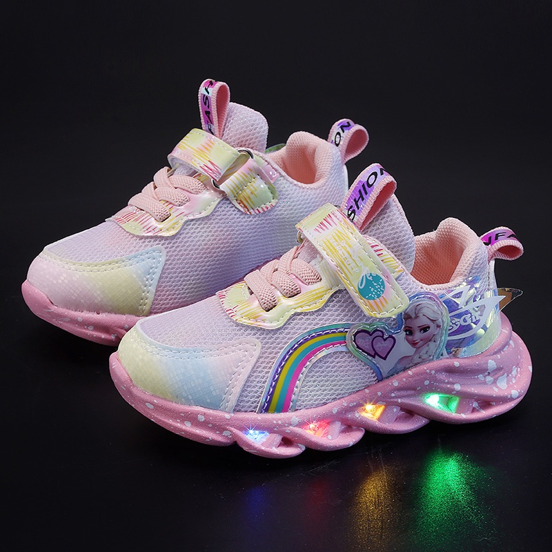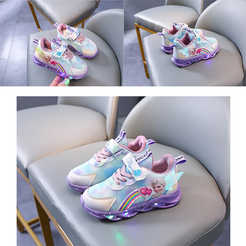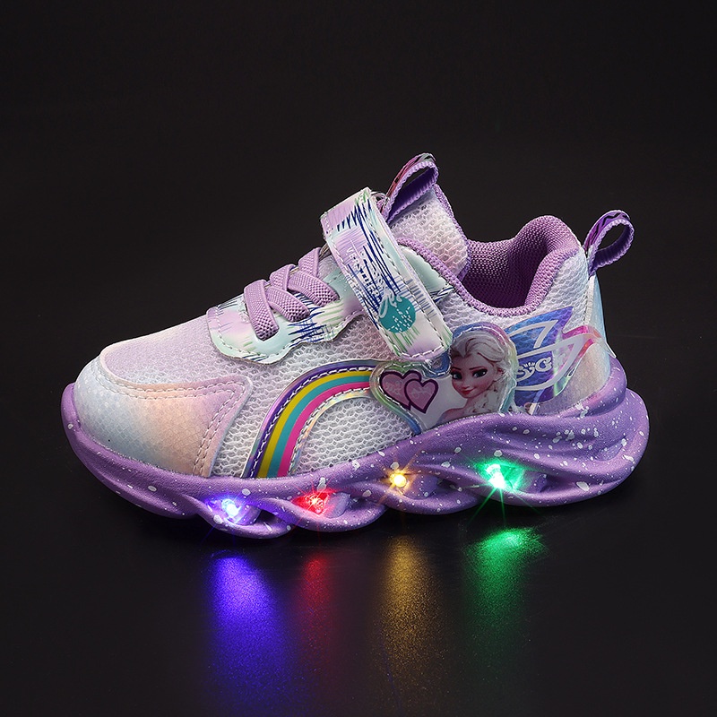 True to description: elsa led glow sports shoes for girls Material: canvas shoes of canvas Color: pink, purple, purple Received the goods, fast delivery, beautiful shoes, glowing, baby loves it