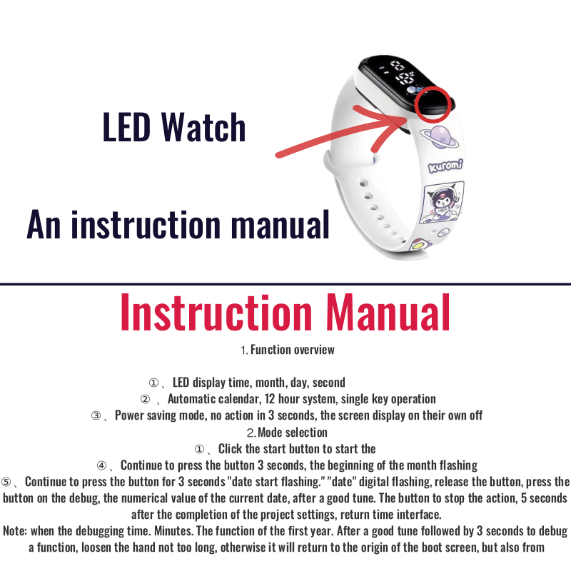 Appearance: Beautiful Color: beautiful Material quality: good The product is a rubber strap watch with a cartoon pattern, it is a digital watch suitable for children. Fast delivery, received in good condition with a good shockproof cover
